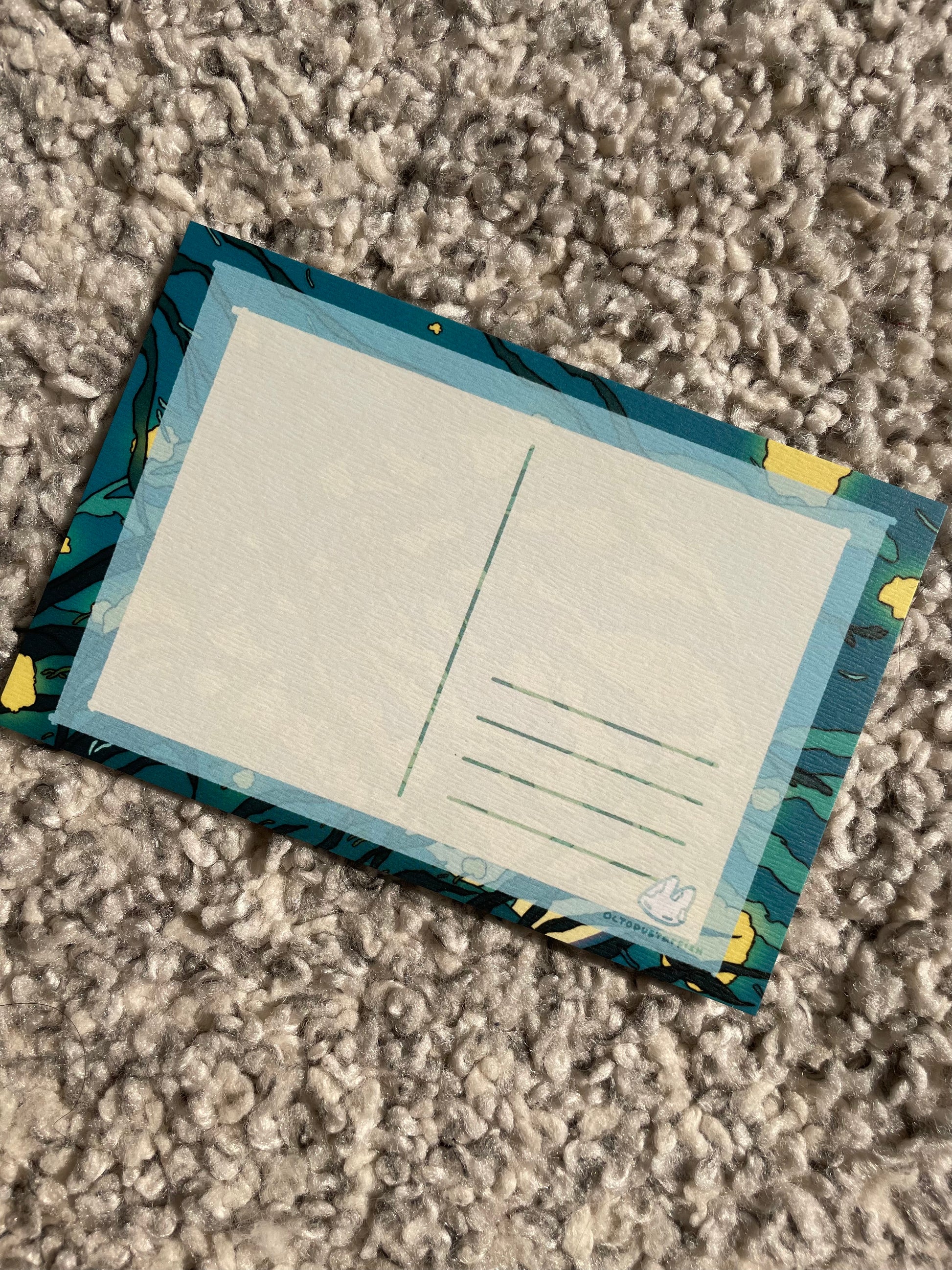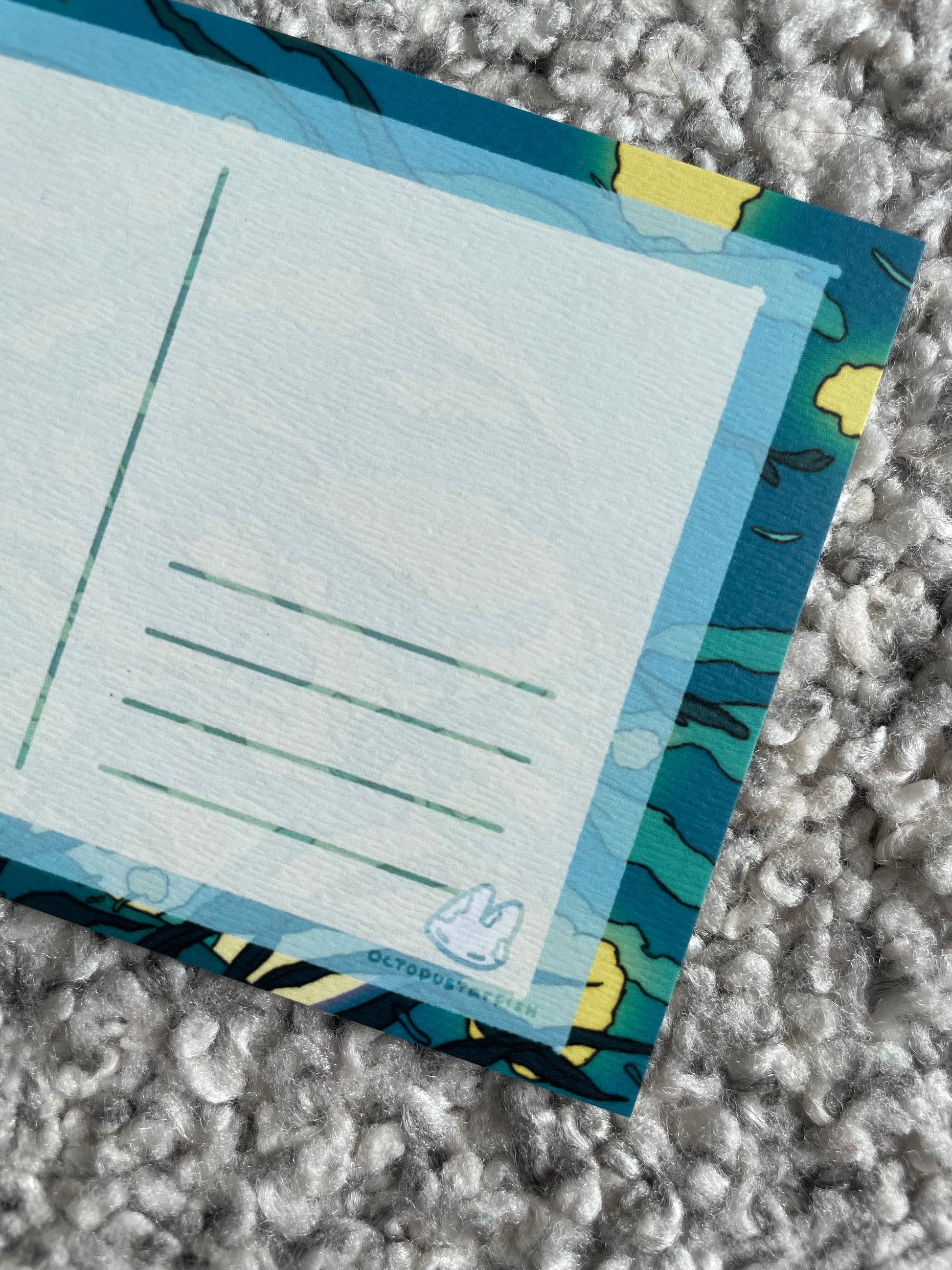 This original art postcard captures a breezy moment of movement and surrender. Printed on high-quality textured cardstock with full-color artwork on both sides, it’s a small piece of wind and wonder, held still just long enough to keep.